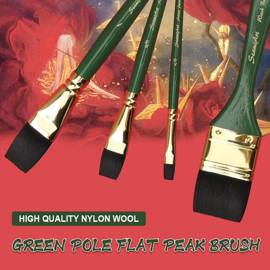 ArtFur – Green Nylon Flat Artist Paint Brush