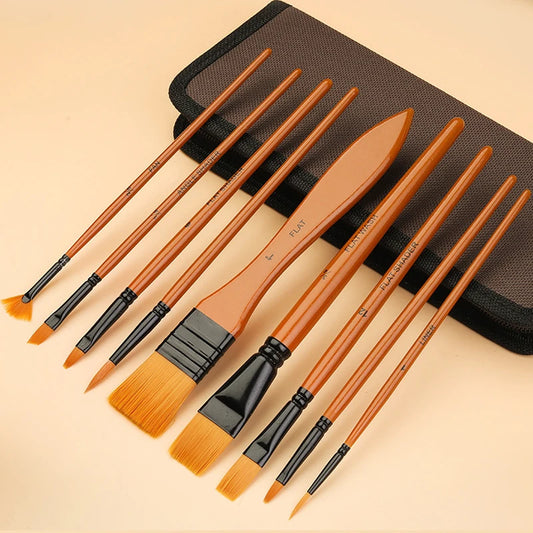 BrushAura – 10pcs Wooden Handle Painting Brush Set