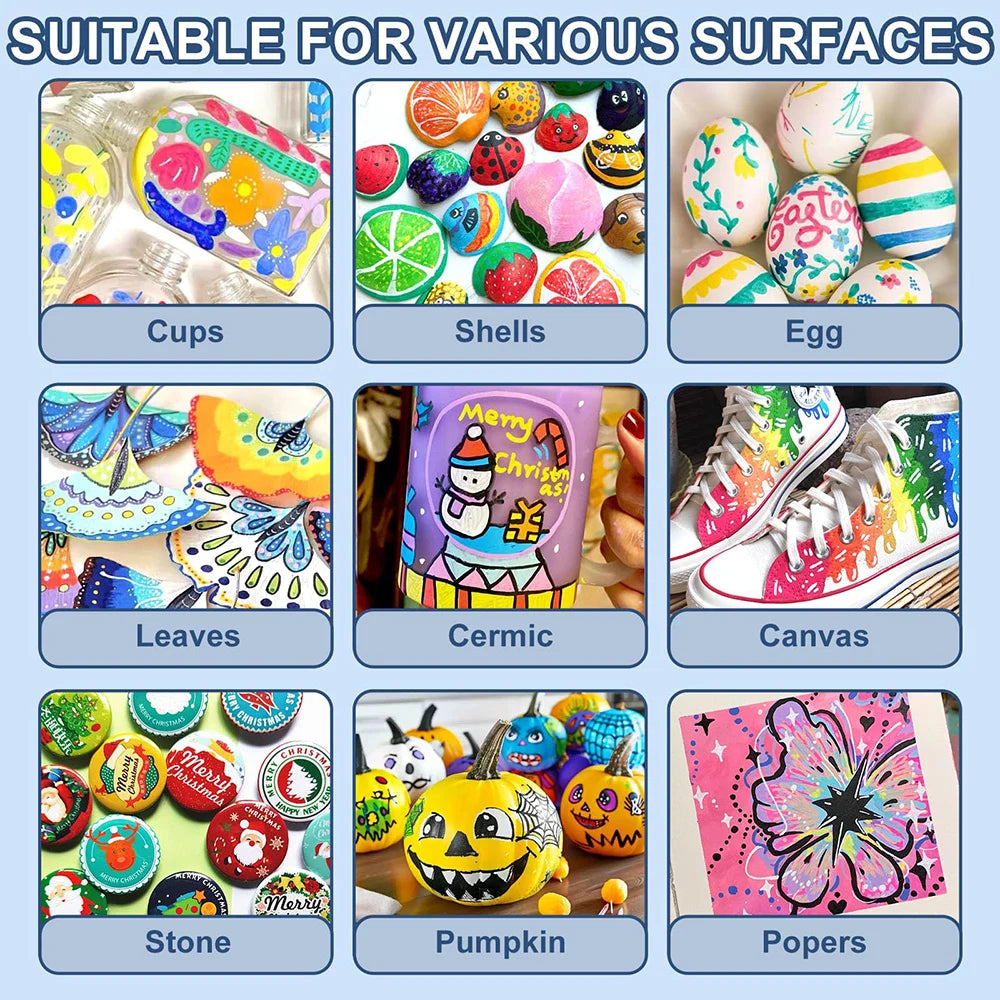 Versatile Use Works on canvas, wood, glass, ceramics, and more