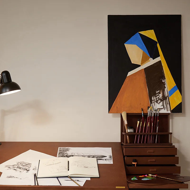 The ArtKeep Storage Box is a multifunctional organizer made from solid wood, designed to neatly store and protect a variety of art supplies. With multiple drawers and compartments, it offers ample space for pencils, pastels, brushes, pens, and stamps. Its sturdy build and smooth finish make it both practical and visually appealing on any art desk.