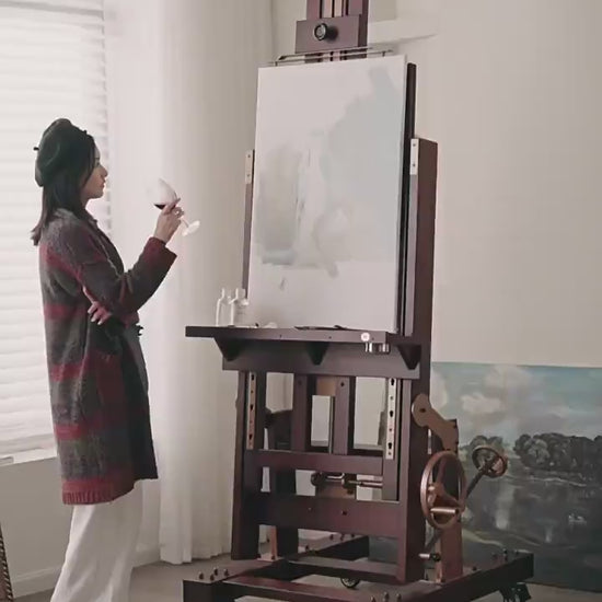 ArtStand is a high-quality hand-cranked easel crafted from premium beech wood, built to support large canvases with ease and stability. Designed for both painting and display, this jumbo easel features an adjustable flat stand mechanism that allows you to customize the angle and height to suit your style. Its sturdy construction, smooth crank system, and natural wood finish make it a top choice for studios, galleries, and serious artists.