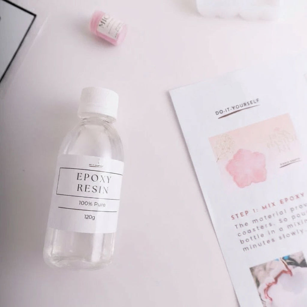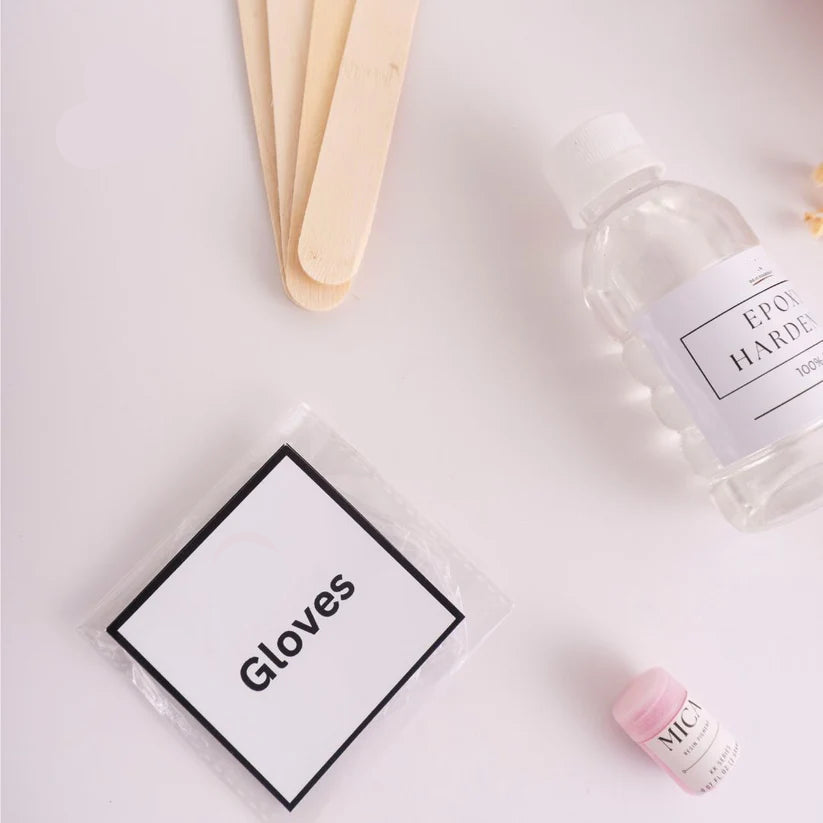 Complete Creative Kit: Includes epoxy resin (120g), epoxy hardener (60g), mica colour (one random shade), baby’s-breath flowers, protective gloves, flower-coaster mould, plastic mixing cups and wooden mixing sticks